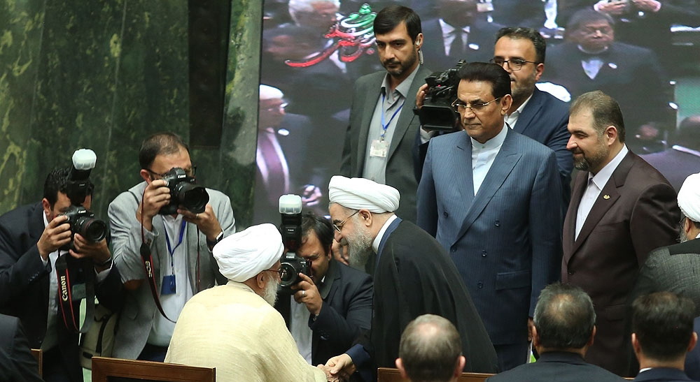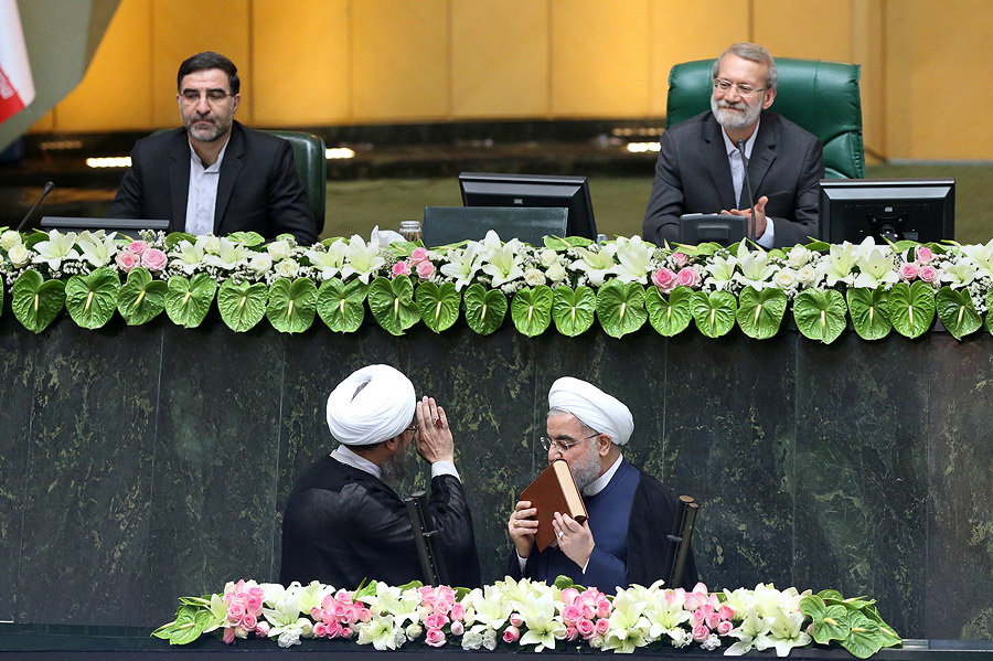 دکتر حسن روحانی هفتمین رییس جمهوری اسلامی ایران در دومین دوره ریاست جمهوری خود بر اساس اصل 121 قانون اساسی در پیشگاه قرآن کریم برای پاسداری از اسلام و قانون اساسی سوگند یاد کرد.