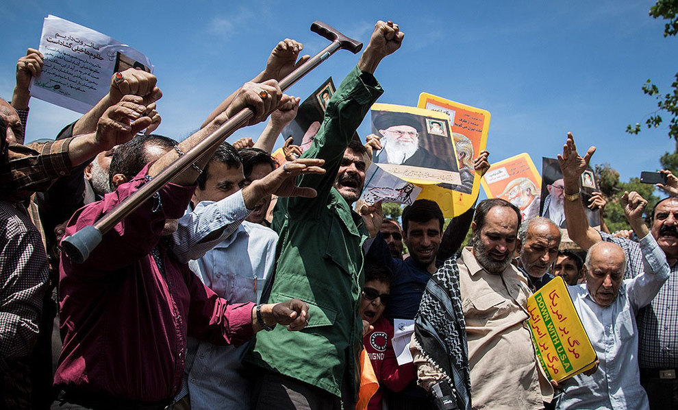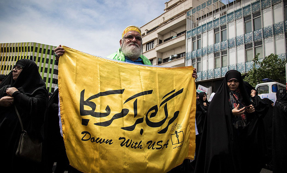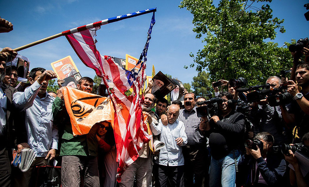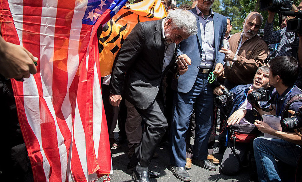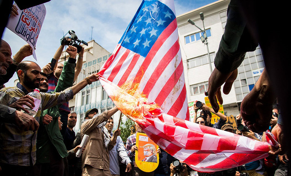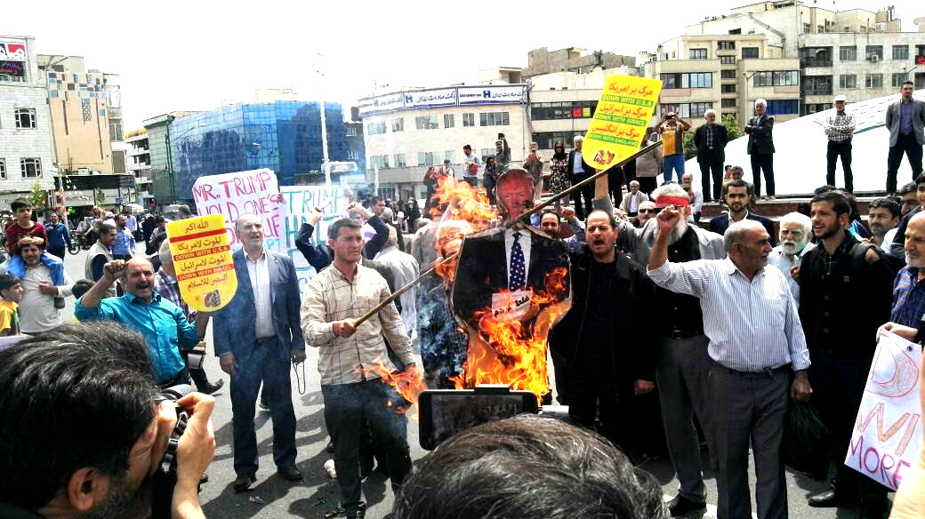 مردم تهران در پی خروج دولت آمریکا از برجام با سردادن شعارهای ضدآمریکایی به راهپیمایی پرداخته و پرچم دولت آمریکا را به آتش کشیدند.