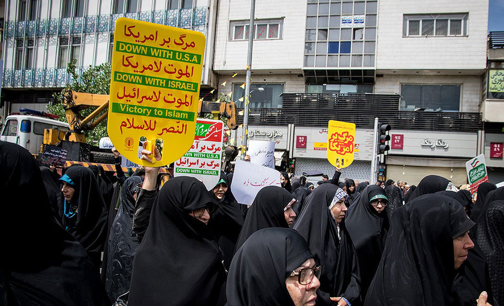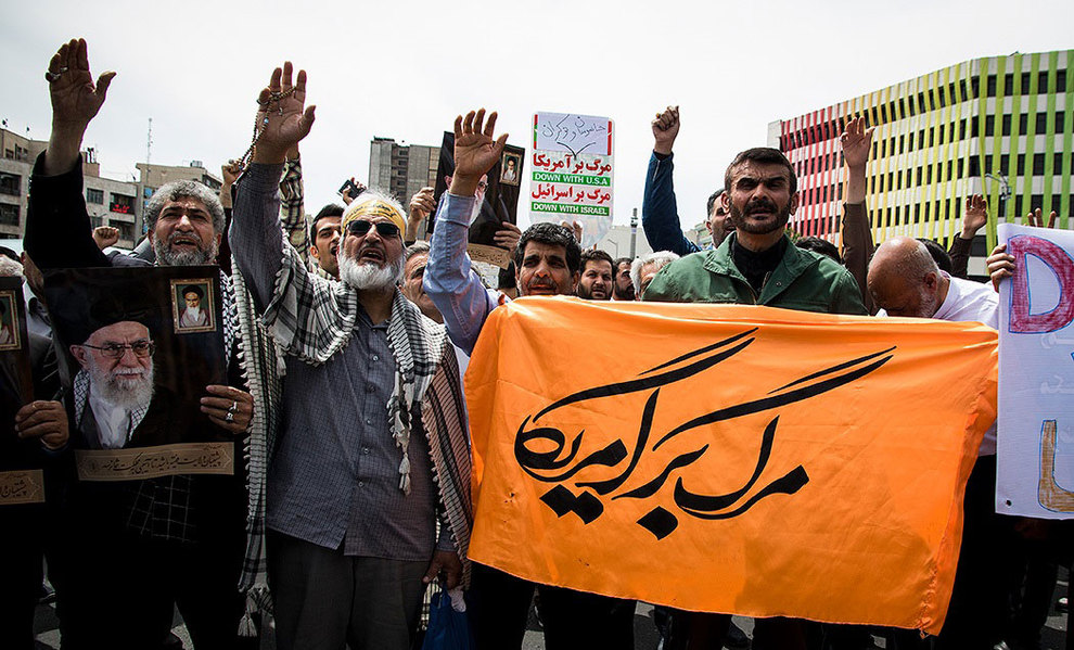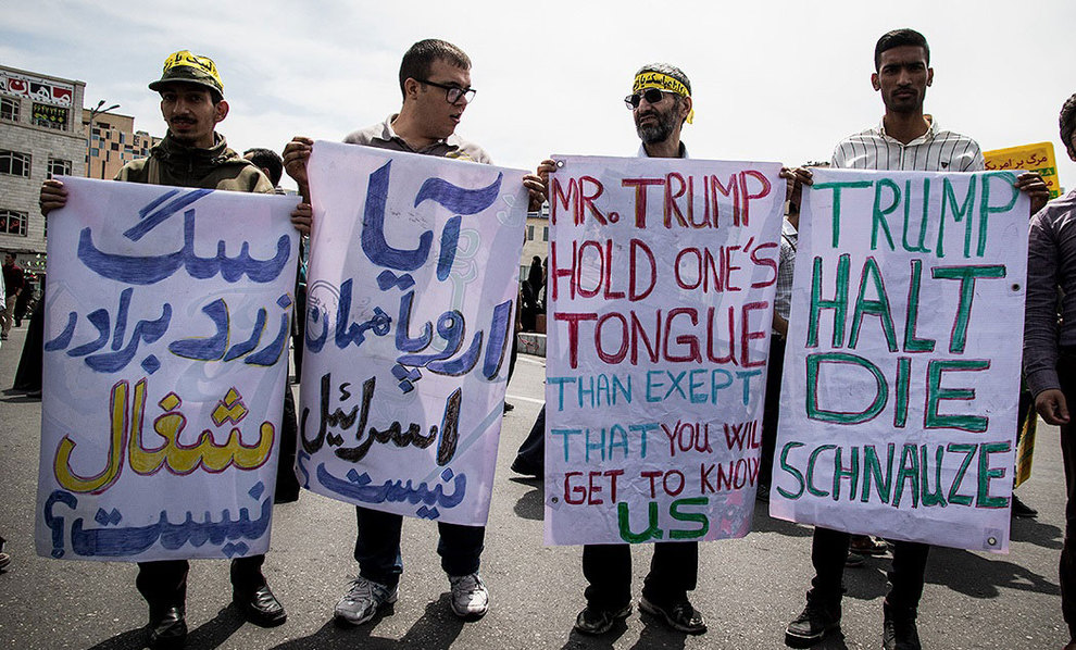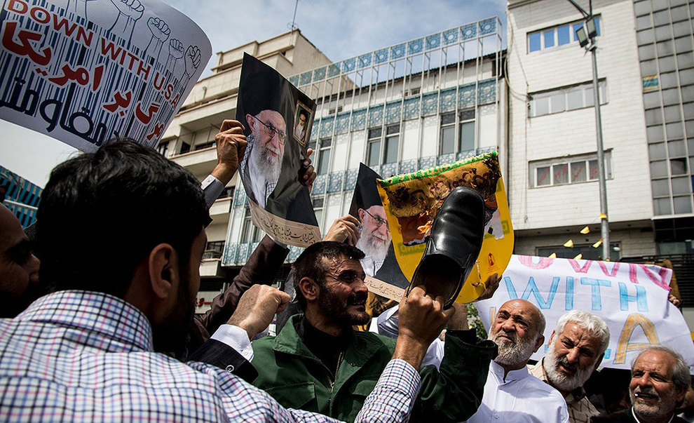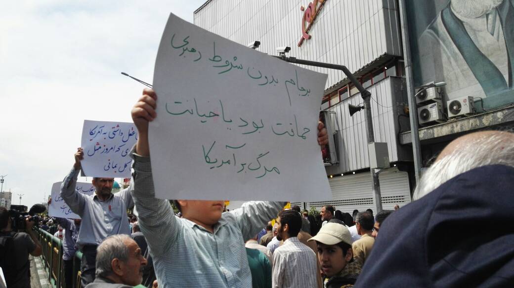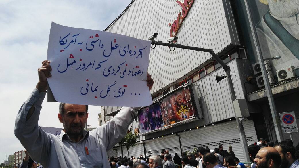 مردم تهران در پی خروج دولت آمریکا از برجام با سردادن شعارهای ضدآمریکایی به راهپیمایی پرداخته و پرچم دولت آمریکا را به آتش کشیدند.