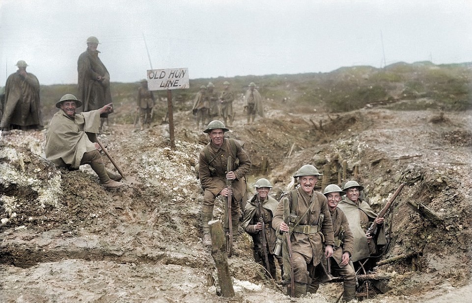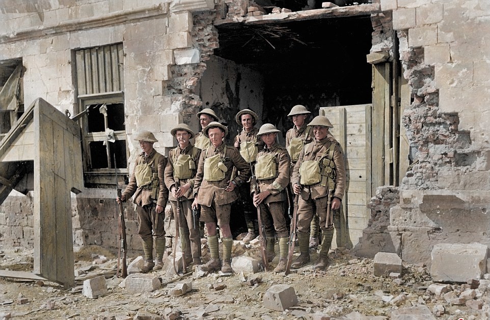 ۹۹ سال پیش در چنین روزی جنگ جهانی اول پس از چهار سال و با تلفات بسیار به پایان رسید. این نبرد که در آن حدود ۱۰ میلیون تن کشته شدند بین متحدین امپراتوری آلمان (اتریش - مجارستان، عثمانی و بلغارستان) و نیروهای اتفاق (جمهوری سوم فرانسه، بریتانیا، روسیه، صربستان، ایتالیا، آمریکا، ژاپن و رومانی) درگرفت و چهار سال به درازا انجامید در نهایت با پیروزی متفقین به پایان رسید. در برخی از این تصاویر سربازان بریتانیایی دیده میشود که برخی لبخند به لب دارند و برخی دیگر از اینکه برادران، پدران و دوستان خود را از دست دادهاند ناراحت هستند. در مجموع حدود شش میلیون نظامی متفقین در جنگ جهانی اول کشته شدند که هفتصد هزار سرباز بریتانیایی را شامل میشود.