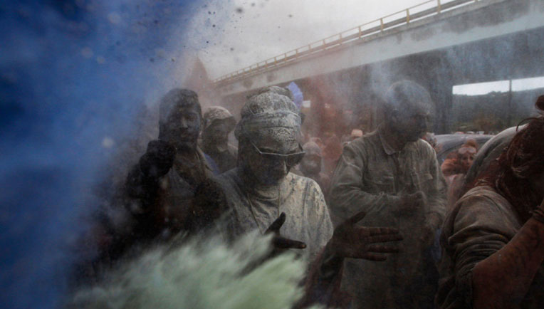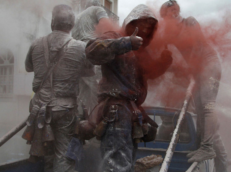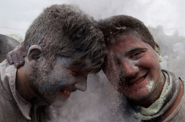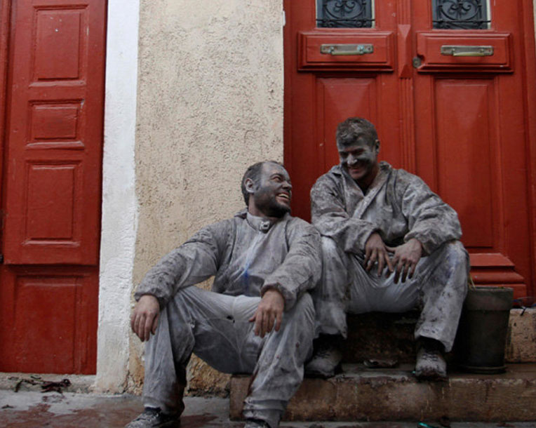 جوانان یونانی در شهر ساحلی گالاکسیدی برای ساعاتی به دوران کودکی خود برگشتند و با پودرهای رنگی به یکدیگر حمله کردند. قدمت این مراسم سنتی به بیش از یک قرن پیش برمی گردد.