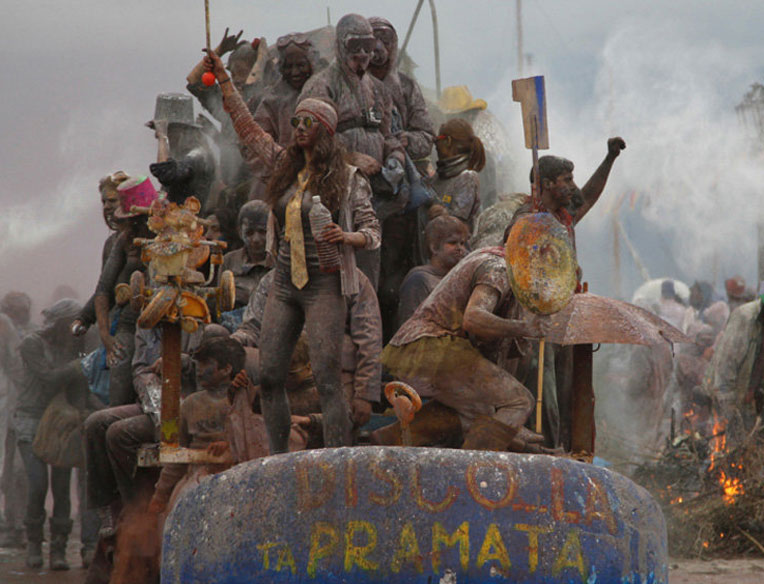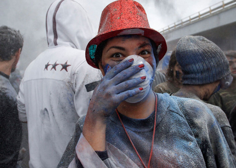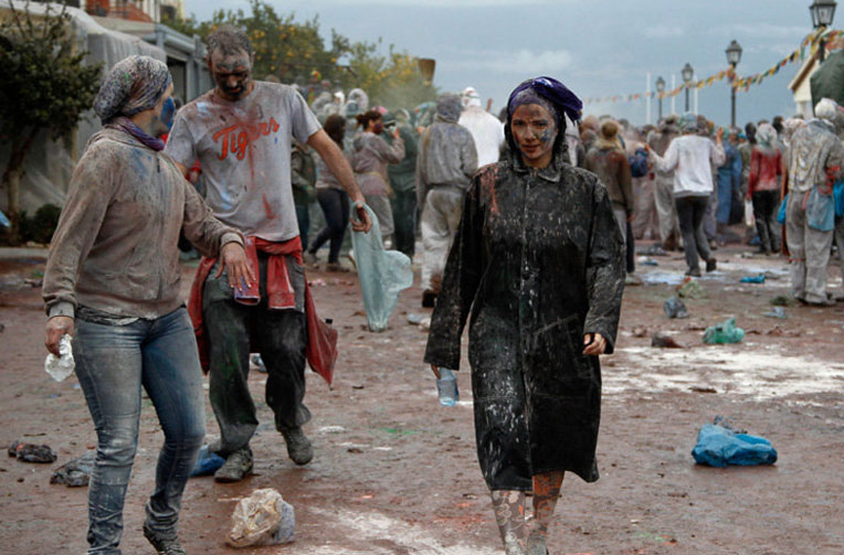 جوانان یونانی در شهر ساحلی گالاکسیدی با پودرهای رنگی به یکدیگر حمله کردند. قدمت این مراسم به بیش از یک قرن پیش برمی گردد.